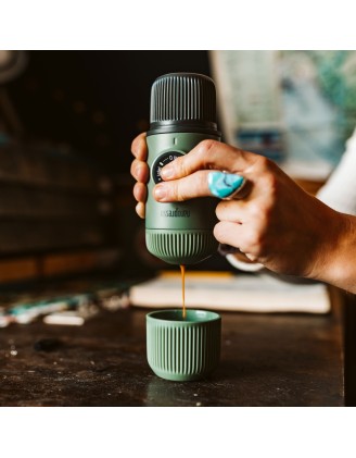 Wacaco Nanopresso Moss Green z etui to przenośny ekspres podróżny, który pozwala delektować się smakiem autentycznego espresso na każdej szerokości geograficznej.