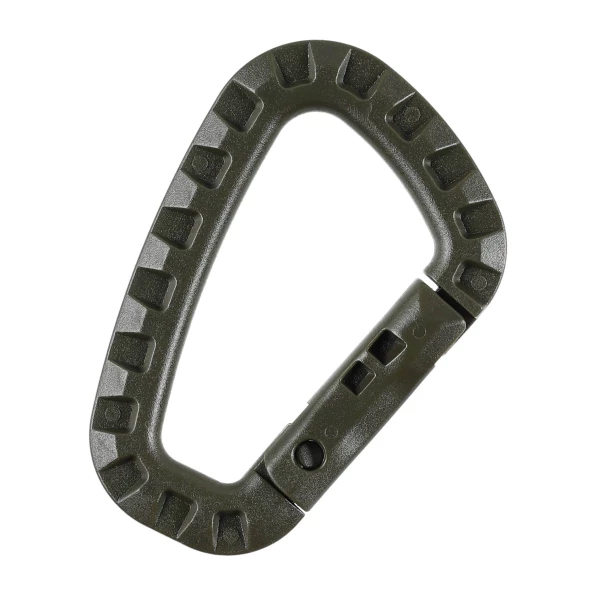 Karabińczyk M-Tac powstał z wytrzymałego tworzywa ABS i charakteryzuje się antypoślizgową fakturą, która ułatwia użytkowanie go w rękawicach taktycznych lub zimowych.