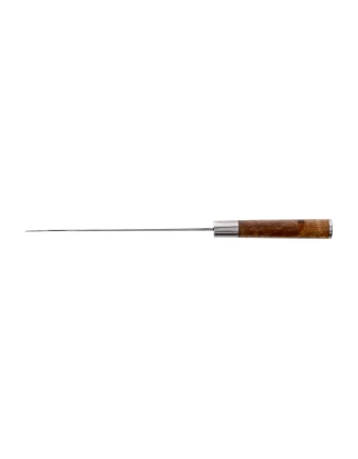 Pełnowymiarowy nóż szefa kuchni sprawdzi się wszędzie tam, gdzie praca wre - ta przeznaczona do wszelkiego rodzaju siekania konstrukcja sprawdzi się zarówno w szybkim przygotowaniu mięsa na gulasz jak i podczas intensywnego rozdrabniania pietruszki na chimichurri. Dzięki wydatnemu brzuchowi krawędzi tnącej operowanie nożem jest niezwykle łatwe i precyzyjne, a relatywnie długa głownia poradzi sobie również z filetowaniem dużych ryb czy wykrawaniem masywnych steków. Zastosowanie stali VG-10 zapewniającej dobre trzymanie ostrości połączone z niezwykle łatwym ostrzeniem i świetną odpornością na korozję gwarantuje niezawodną i przyjemną eksploatację. Konstrukcję dopełnia przyjemne wzornictwo łączące surową powierzchnię głowni z elegancką, drewnianą rękojeścią.